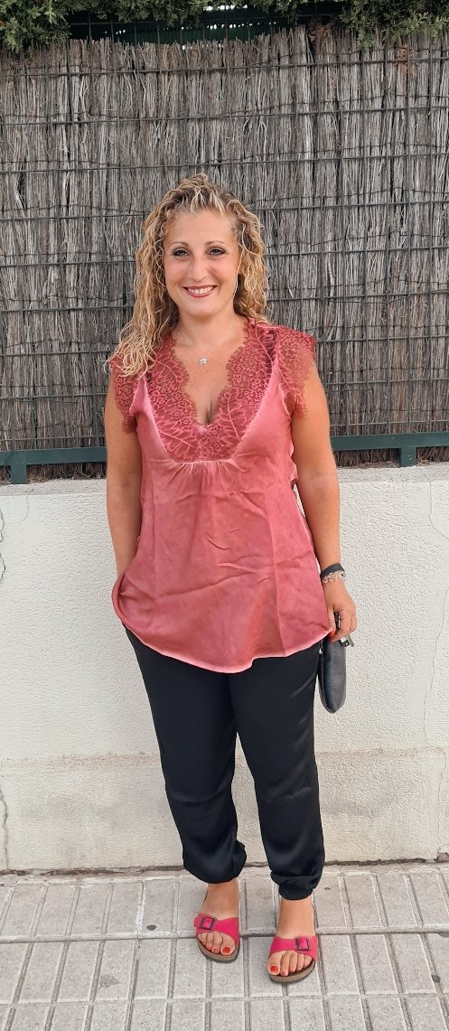 – pour le haut : une tunique en satin sans manche légèrement ample (juste une petite dentelle pour agrémenter au niveau de l’épaule)