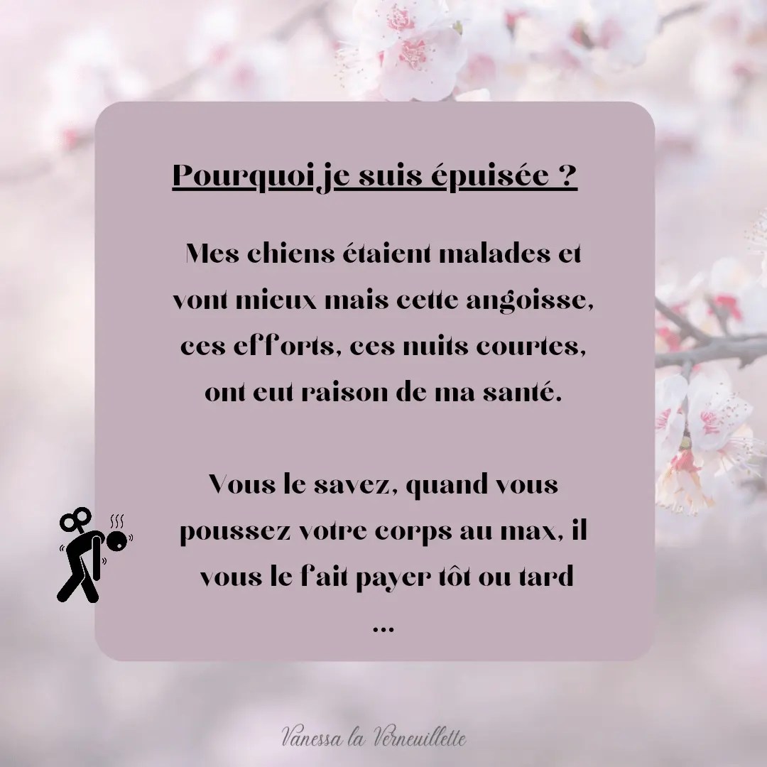 Ces derniers temps, je suis bien plus fatiguée que d’habitude, tout devient un effort à la limite du supportable, je n’ai ni le goût ni l’envie….