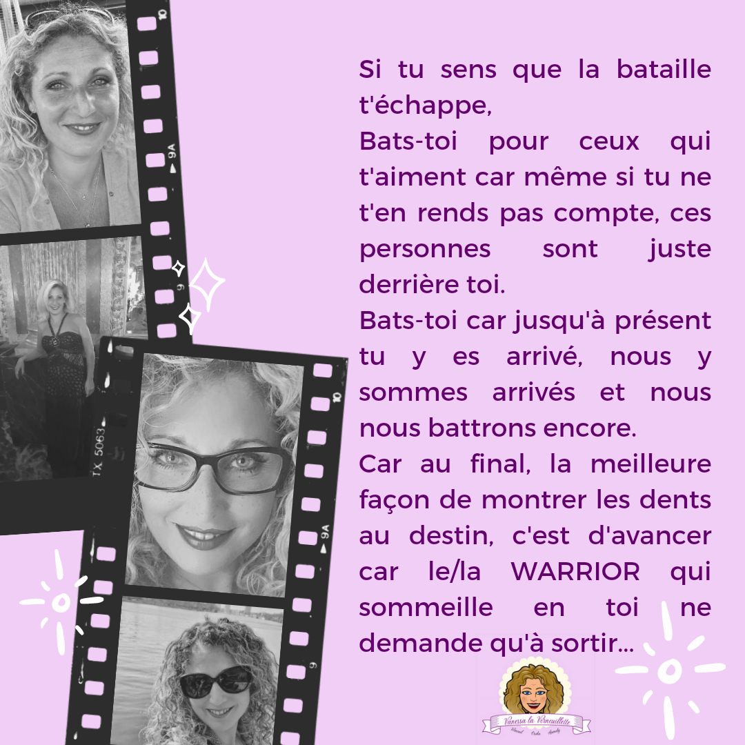 Car au final, la meilleure façon de montrer les dents au destin, c’est d’avancer car le/la WARRIOR qui sommeille en toi ne demande qu’à sortir…