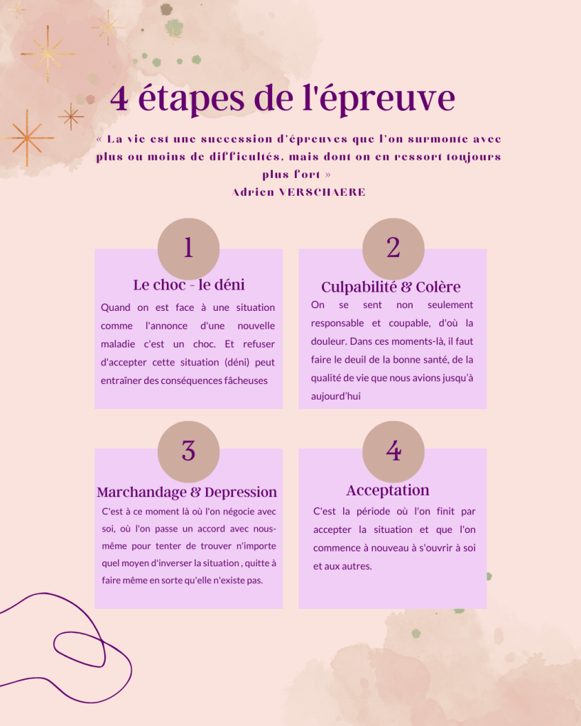 Je pense que la réponse est de vivre chaque étape avec force et courage, et qu’après la pluie vient toujours le beau temps. Voyons ensemble quelles sont ces étapes :