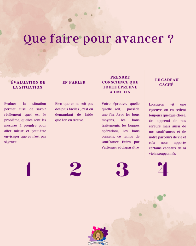 Votre épreuve, quelle qu’elle soit, possède donc une fin. Avec les bons moyens, les bons traitements, les bonnes opérations, les bons conseils, ce temps de souffrance finira par s’atténuer et disparaître je vous le promets 😉. Et surtout cela vous permettra de profiter pleinement de ce moment de répit