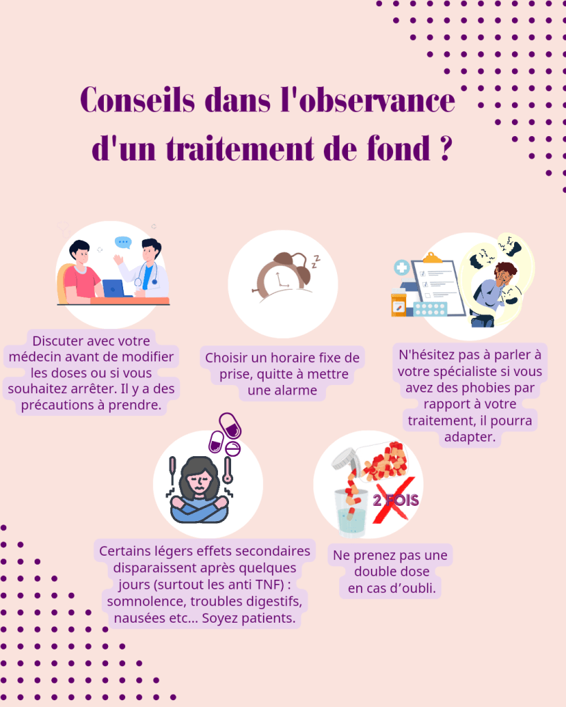J’ai tendance à expliquer qu’au même titre qu’un diabétique a besoin de son insuline, nous avons d’un traitement de fond. Sans traitement il est assuré de voir la maladie prendre chaque jour un peu plus d’ampleur sur notre corps et dans notre vie.