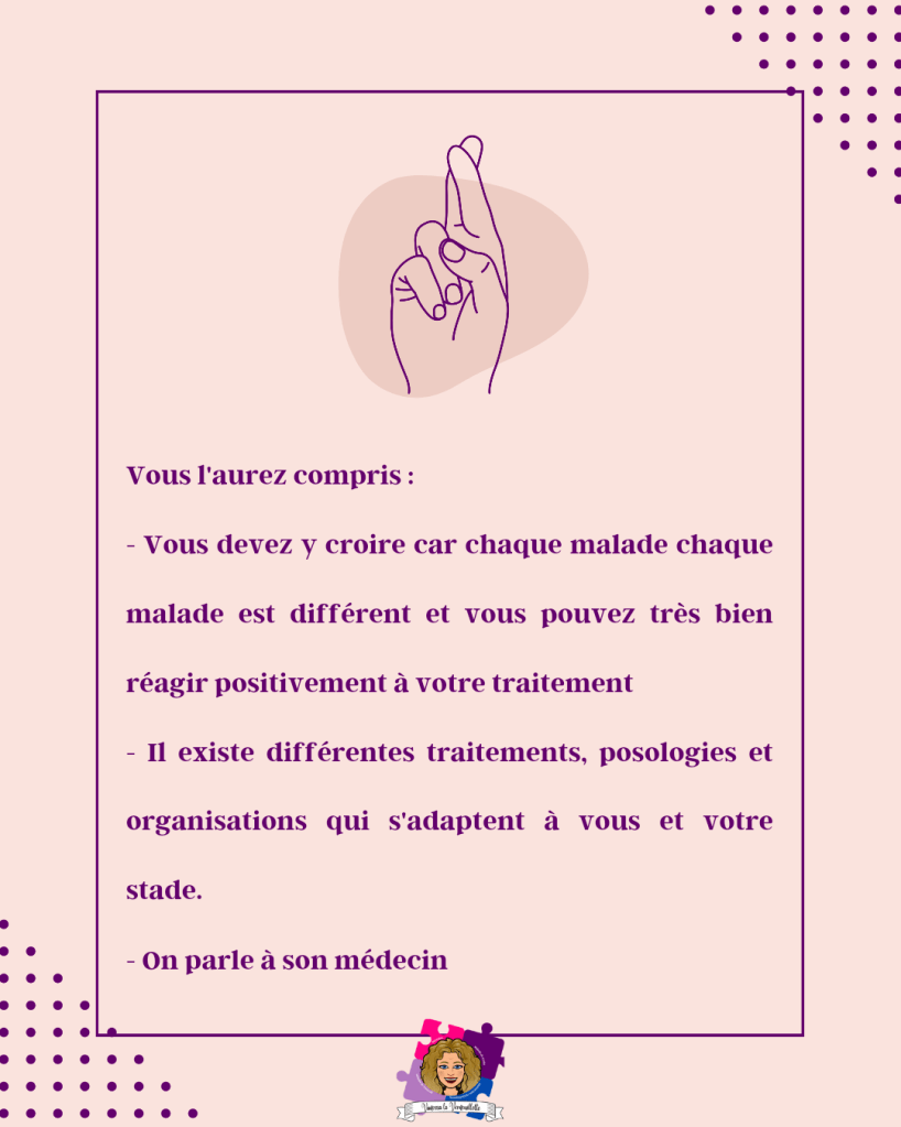 N’arrêtez jamais vos traitements sans en parler à votre médecin ou spécialiste et n’oubliez pas qu’il pourra comprendre car comme vous c’est un humain 😉