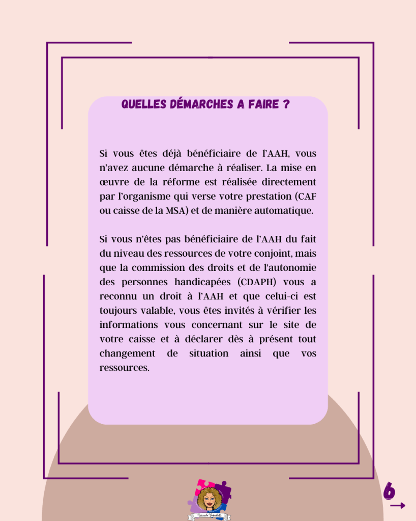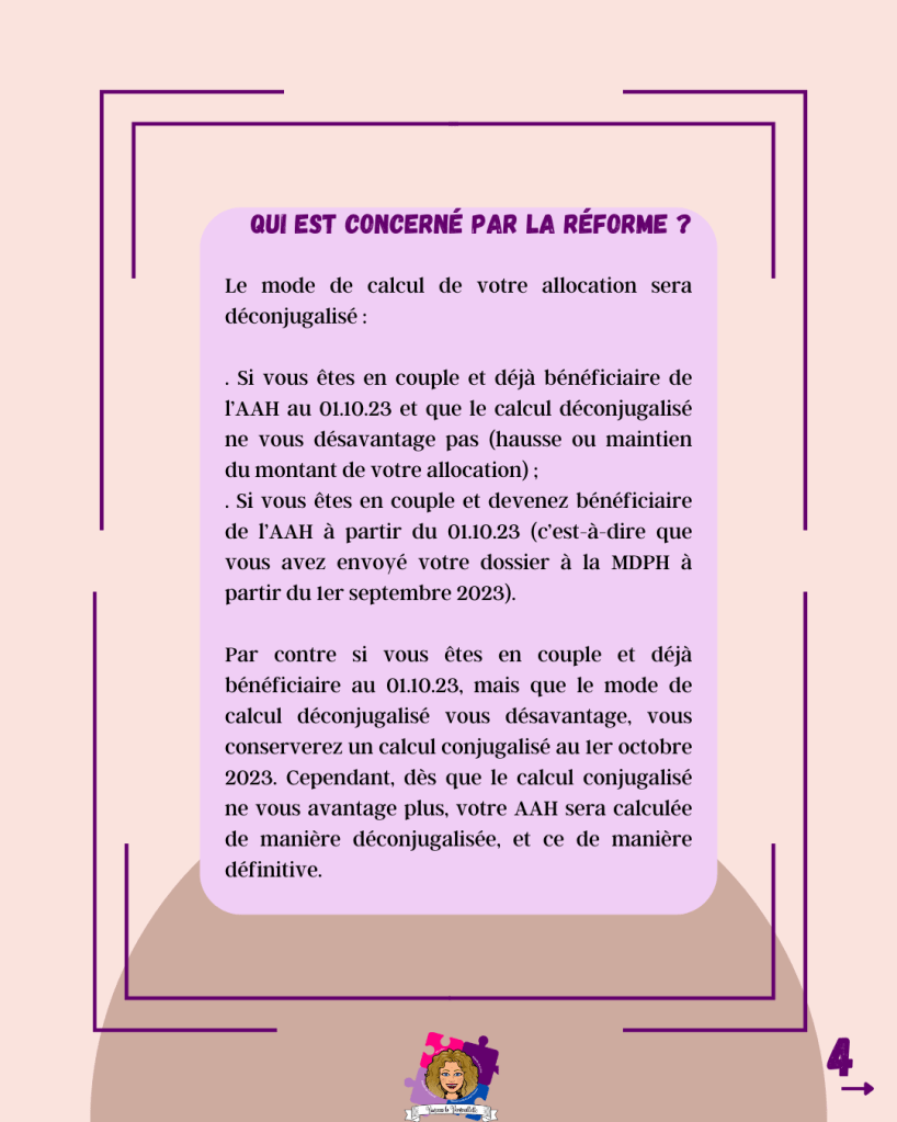 Cette mesure permet de ne plus prendre en compte les revenus du conjoint pour le calcul de l’AAH, afin que les bénéficiaires puissent toucher un revenu + juste et adapté à leur situation.