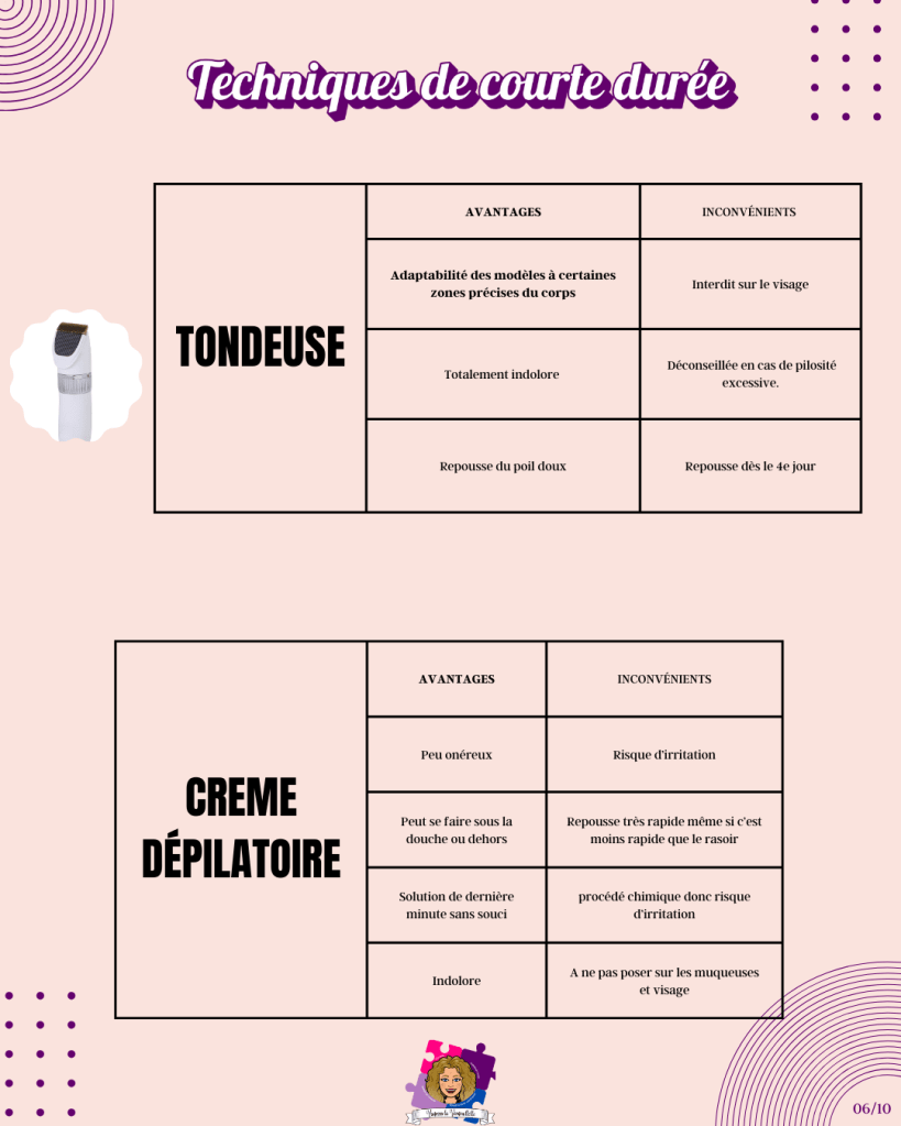 B. LES DIFFERENTES TECHNIQUES D’EPILATION