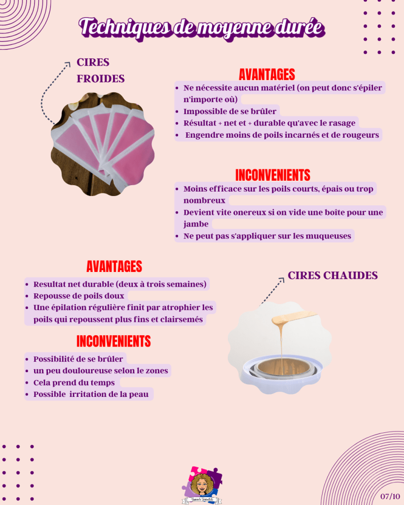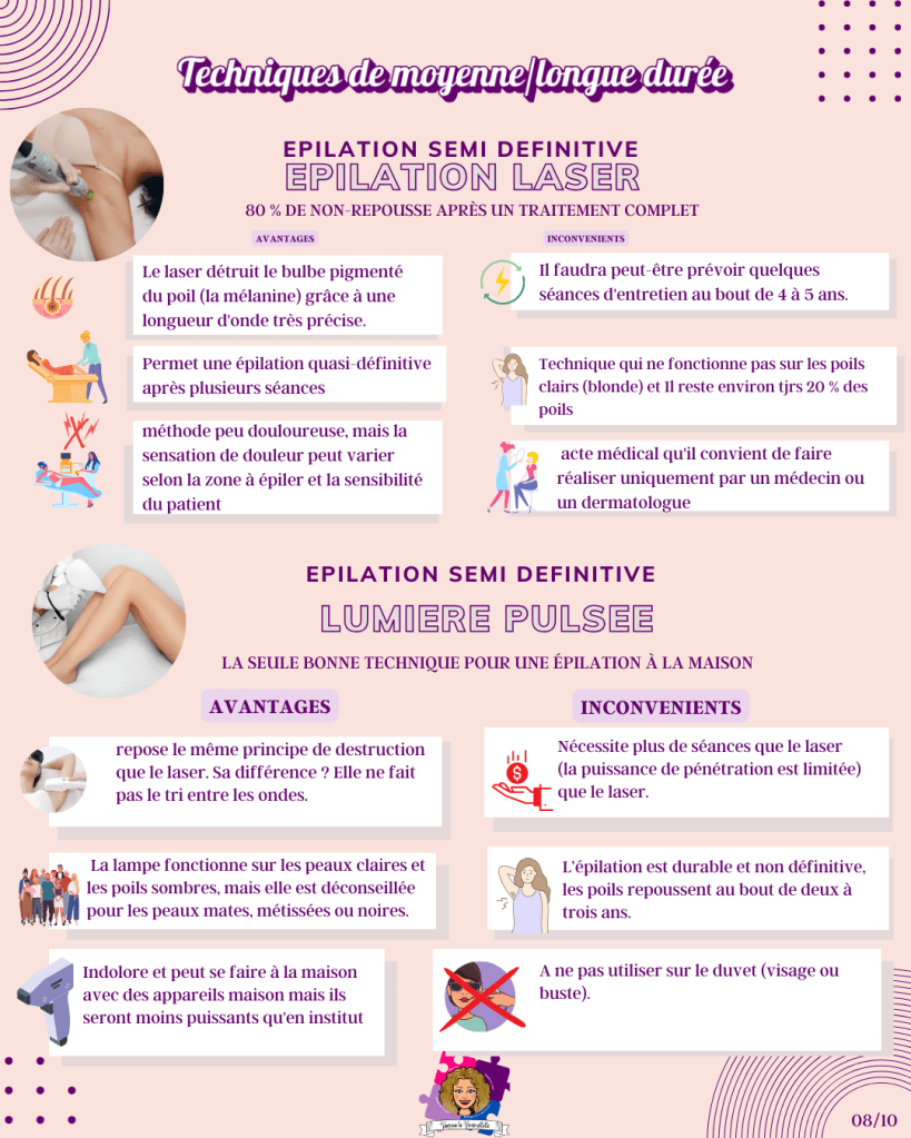 - Pour l’épilation : certains seront aggravés, d’autres ne seront pas impactés par cette technique. Lorsque l’on s’épile, il faut essayer pour voir la sensibilité de la peau et surtout ça dépend de la zone épilée