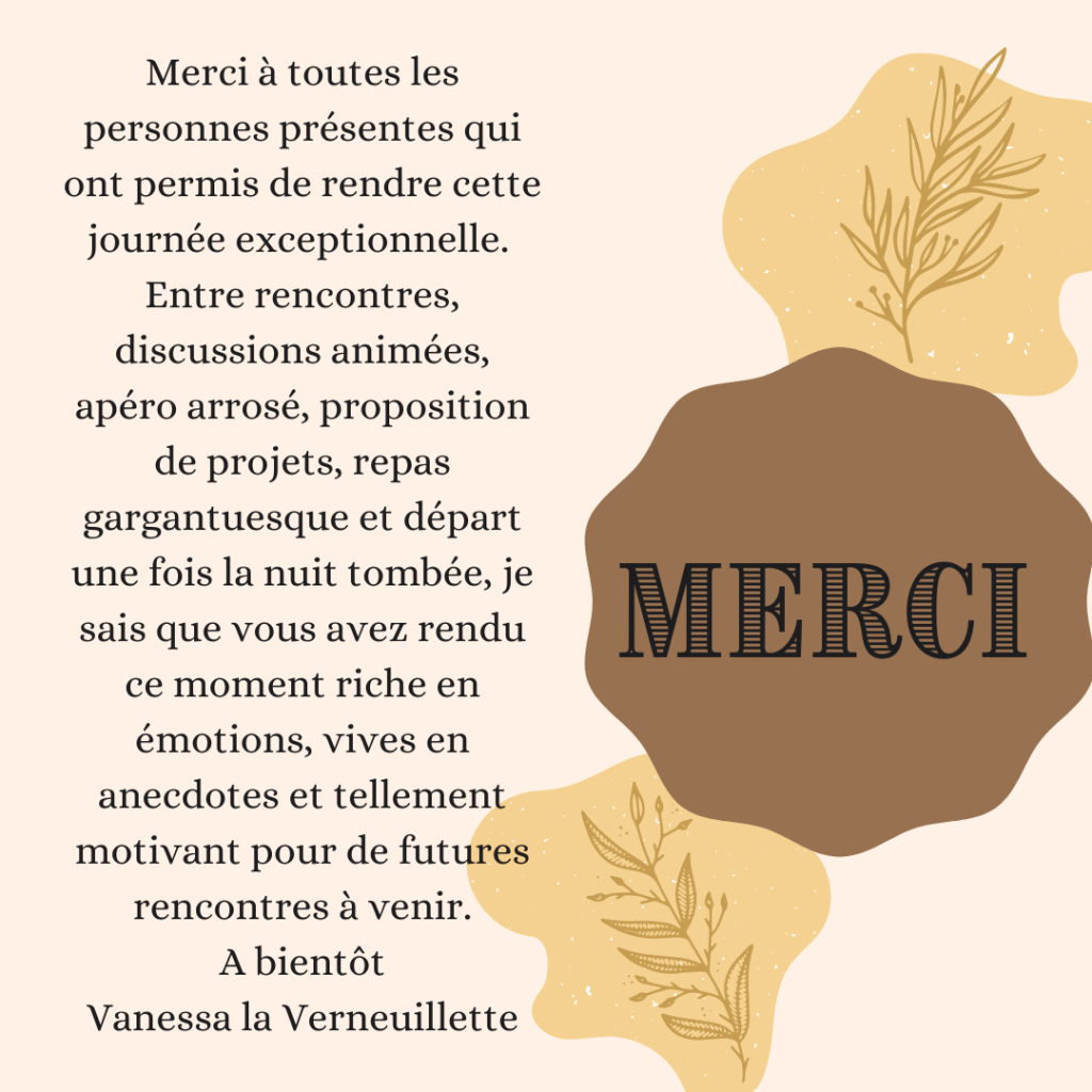Merci donc à vous d’avoir été présents, d’avoir fait vivre cette journée et de me permettre de continuer à faire ce genre de supers rencontres 🥰