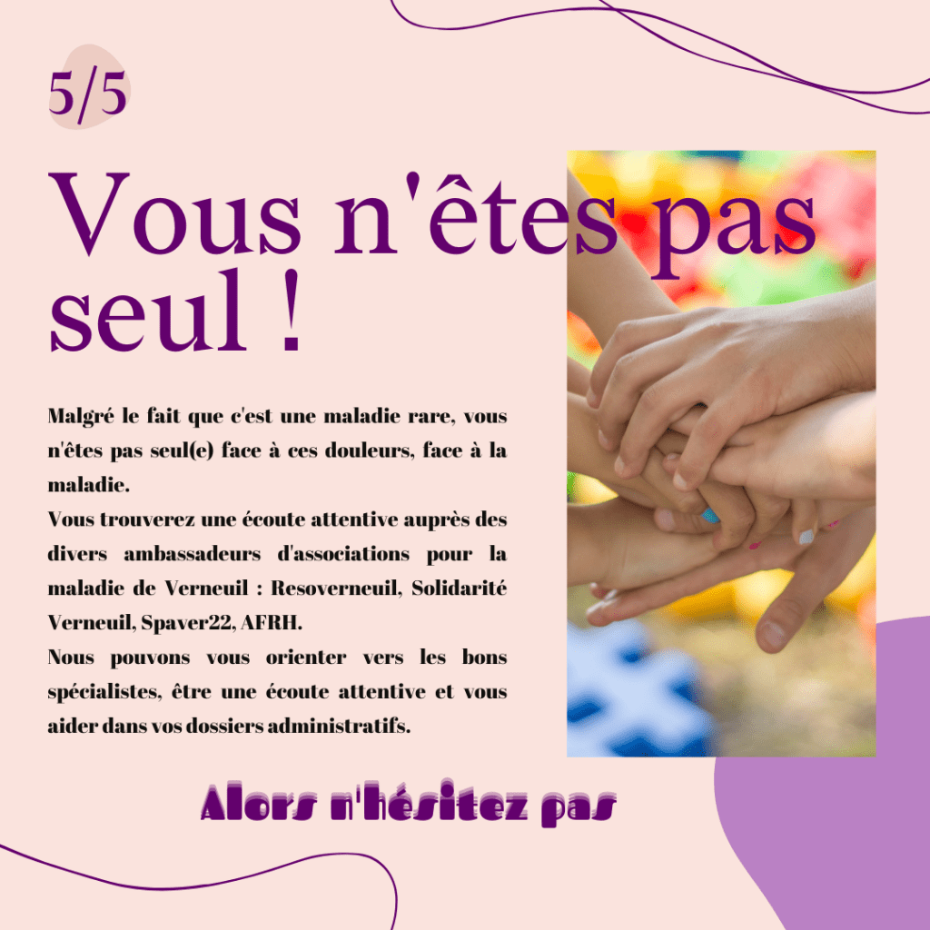 Voilà vous avez l’ensemble des associations en France qui luttent au quotidien pour la sensibilisation et la prévention sur la maladie de Verneuil.