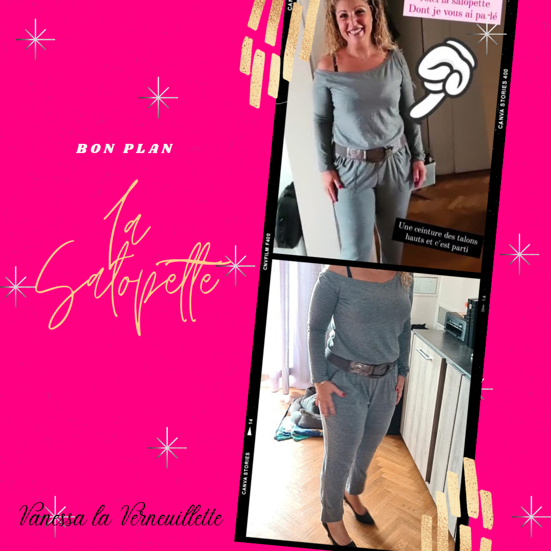 J’ai aussi découvert une tenue hors du commun 🤣, une de celles que vous pouvez porter à la maison en claquette pour être à l’aise ou avec une paire de talons hauts ou de sabot et être habillée pour sortir : je vous présente ma salopette 🥰😍